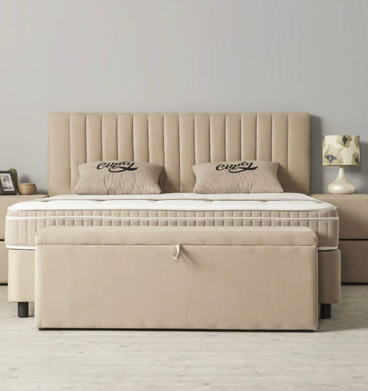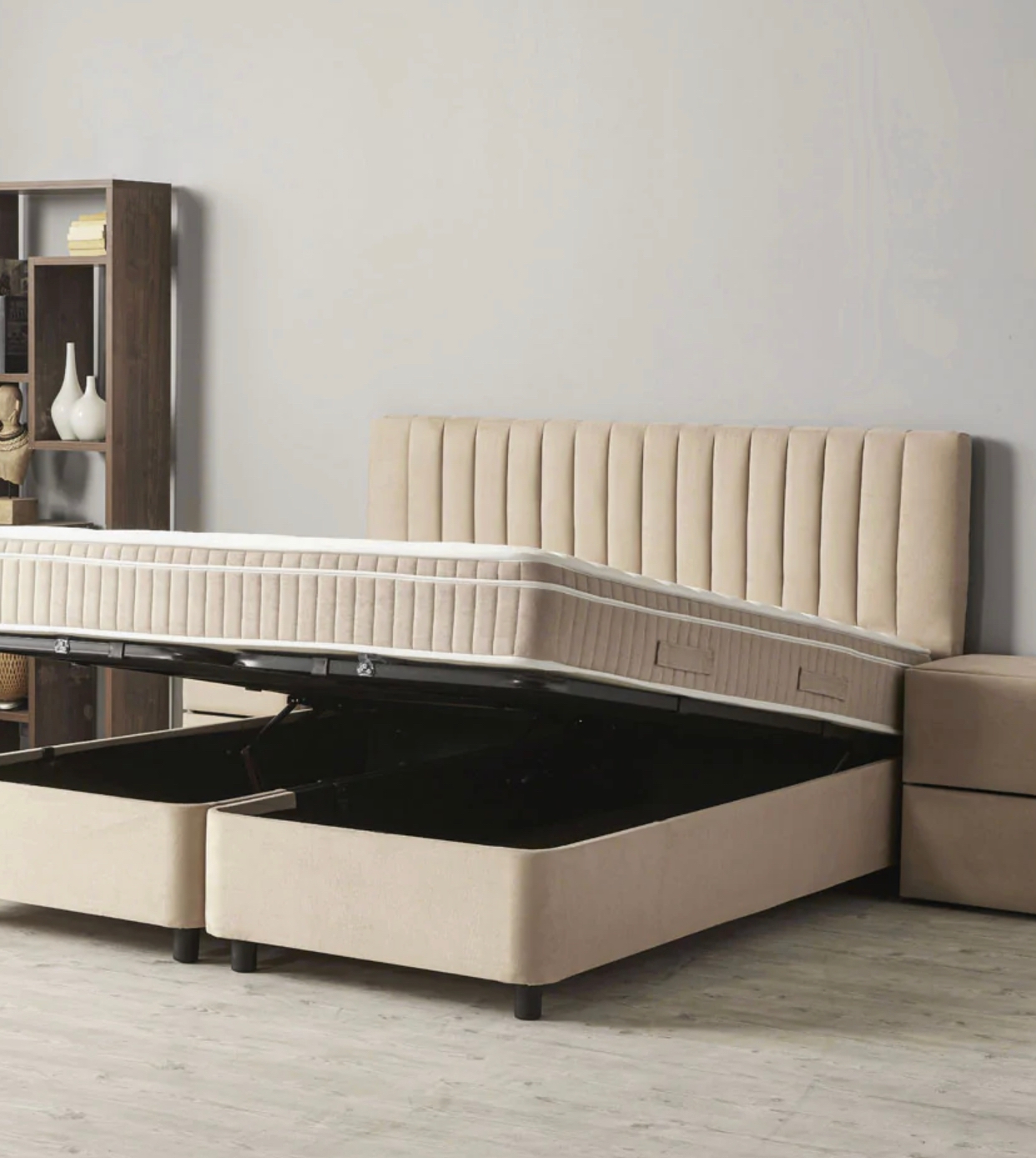 Lit box avec espace de rangement, matelas ressorts Bonel et sur matelas intégré.
