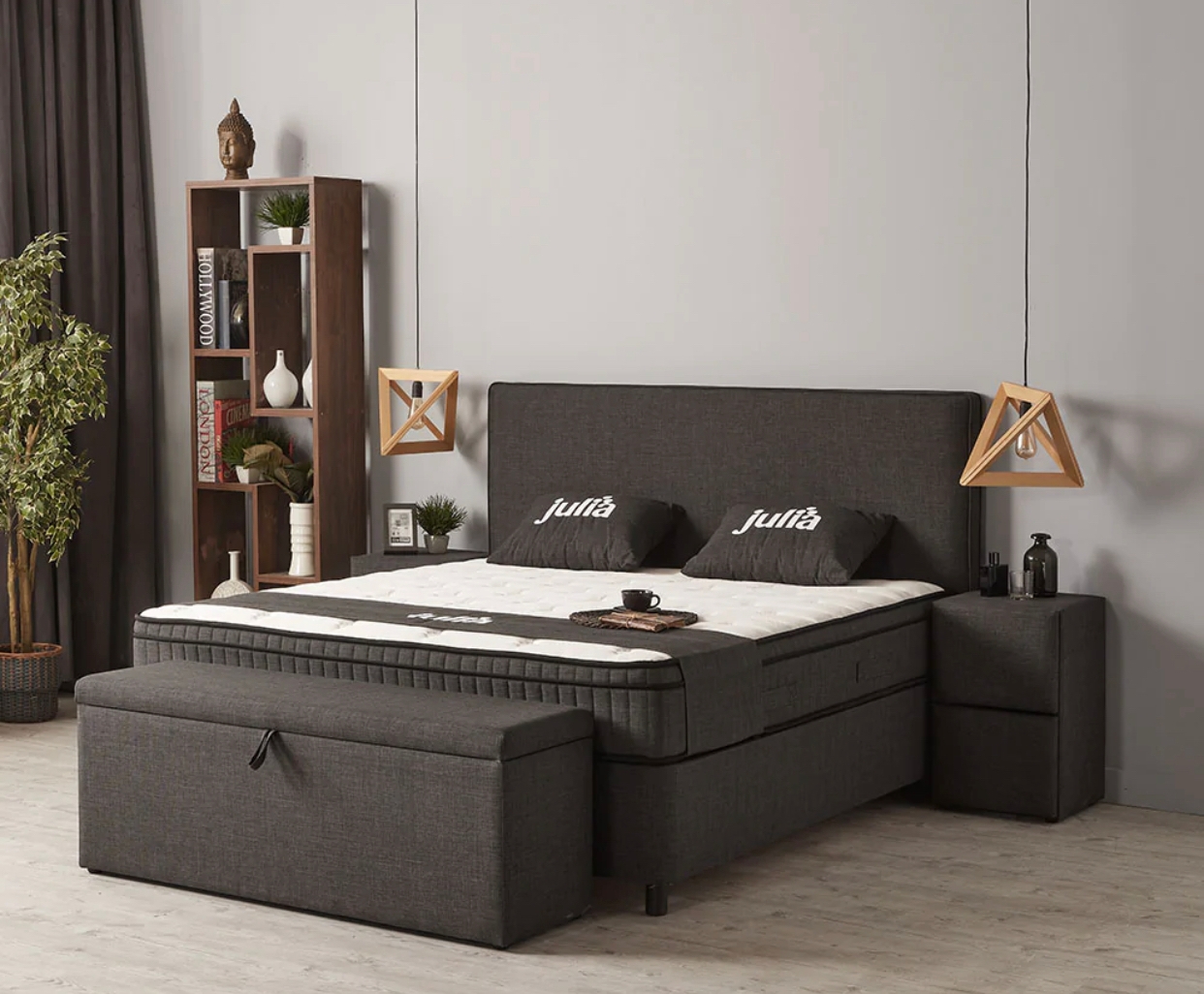 Lit box avec espace de rangement, matelas ressorts Bonel et sur matelas intégré